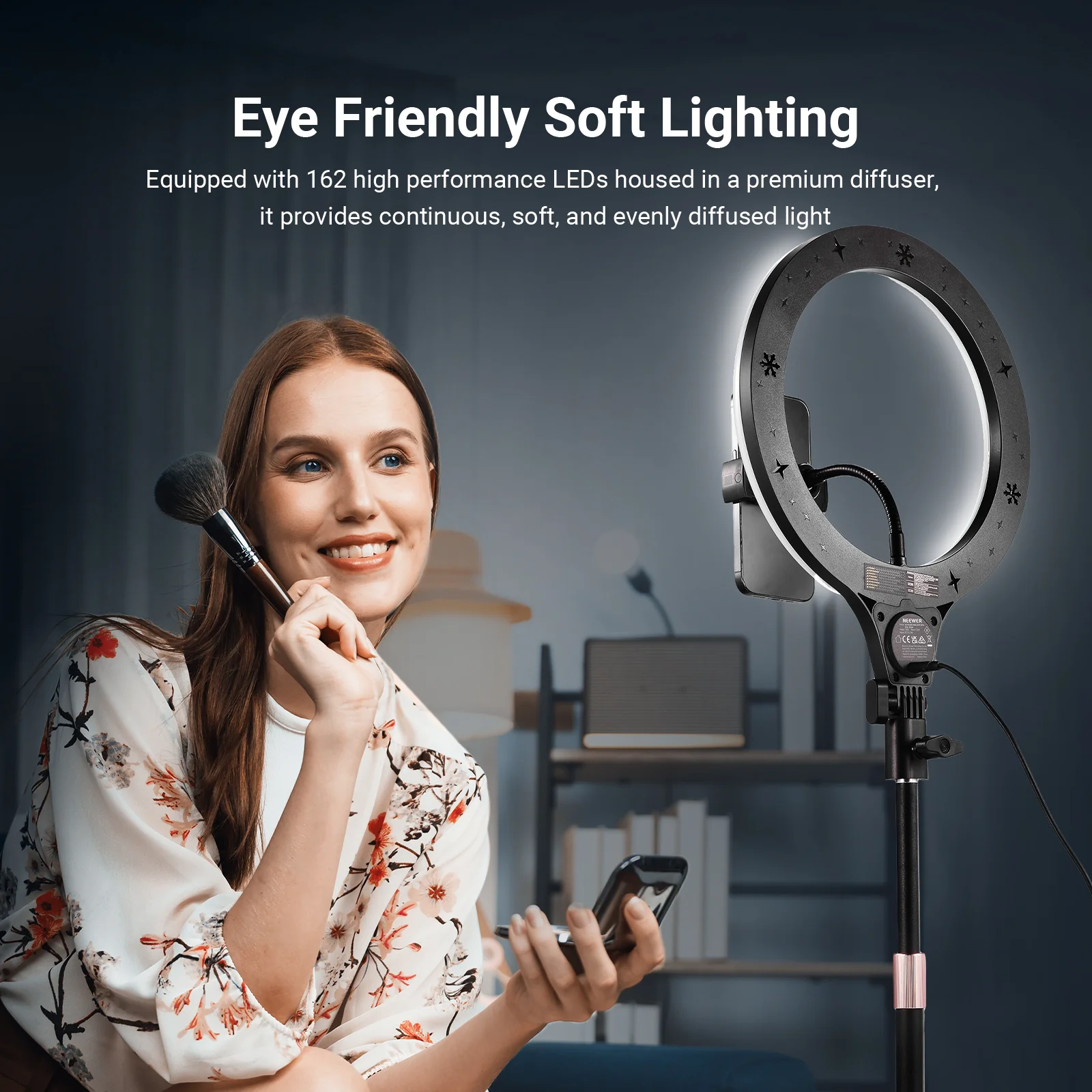 - Universal Phone Mount- A flexible phone holder at the center of the NEEWER ringlight is compatible with iPhone 17 Pro Max Samsung Galaxy, etc. Portable desktop LED ring light with stand kit for overhead camera shooting, selfie lighting, videography