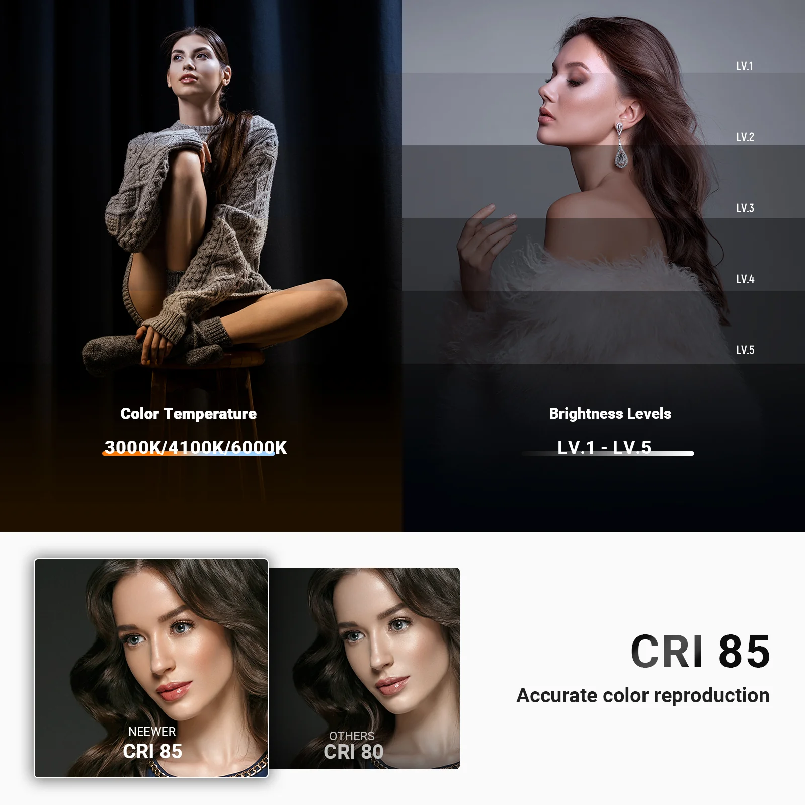- Adjustable Illumination- With bi color 112 LEDs, the NEEWER panel light provides up to 600lux/0.5m with 3 CCT modes, dimmable from 1-100%. Soft, bright key lighting kit for streamer streaming, podcast, selfies, desk computer Zoom meetings and conferences, laptop video conferencing, webcam video calls