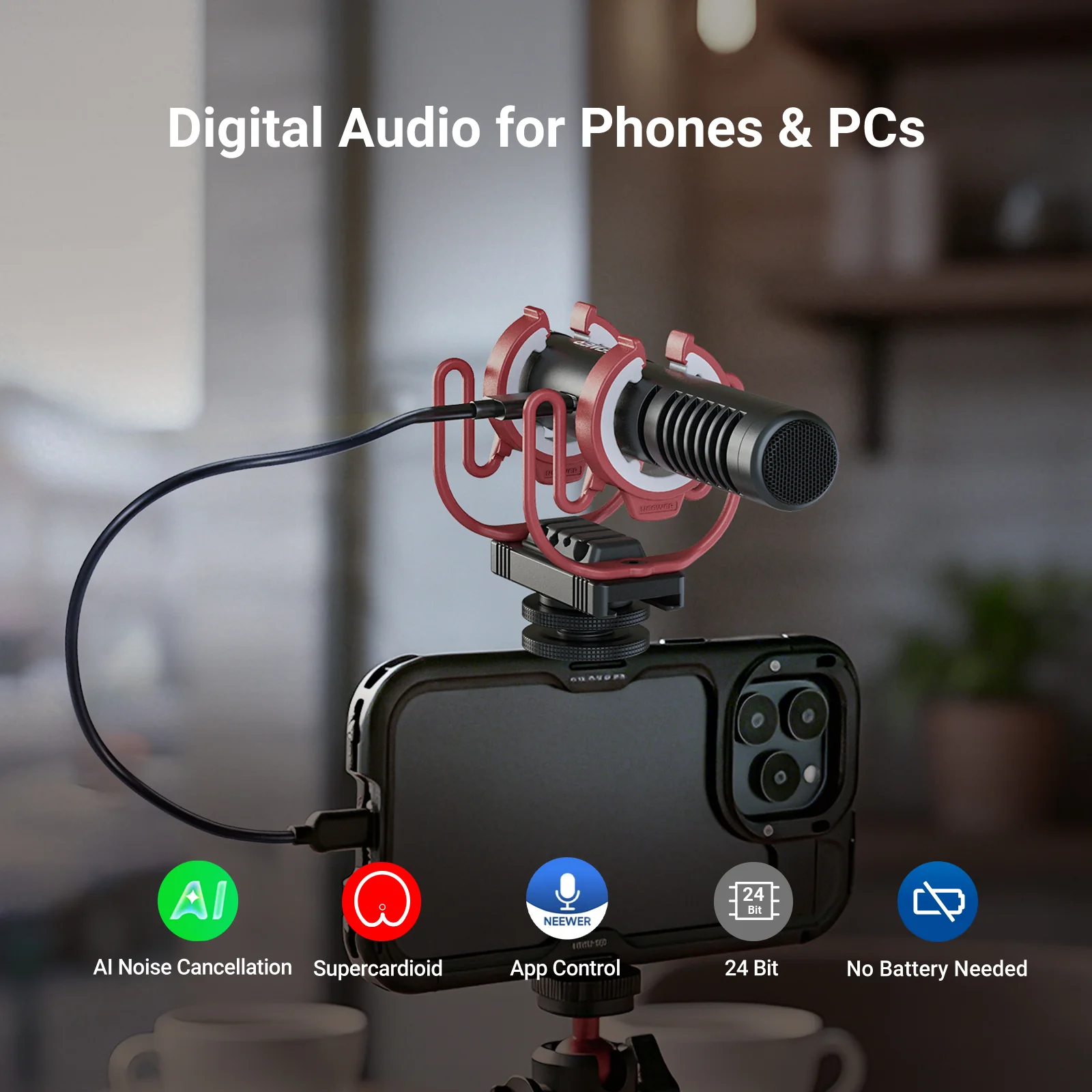 NEEWER VM15 Plug & Play USB C Camera Mic with AI Noise Cancellation